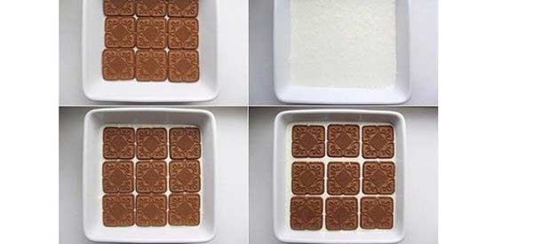 Затем снова печенье и снова крем. И так три слоя.