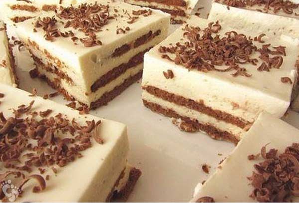 При желании можно украсить сахарной пудрой или листочком мяты. Можно также сделать крем темным, добавив в него какао, а печенье взять светлое!