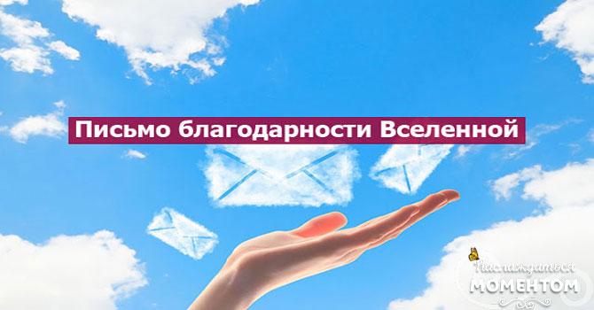 Сразу хочу предупредить: написав такое письмо в первый раз, Вы забудете о половине того, за что можно действительно поблагодарить Вселенную. Но для того, чтобы восполнить упущенное, Вы будете возвращаться к письму неоднократно. В конце концов, у Вас появится некий канон, который нужно будет спрятать подальше от чужих глаз.