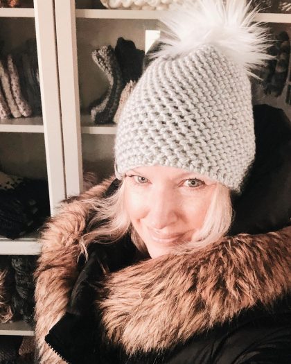 На первом фото мы видим женщину в светло-серой шапке с меховым помпоном, которая хорошо сочетается с черным пуховиком. Добавляем сюда приятную улыбку дамы — и получается игривый и весьма характерный образ.