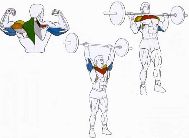 - Во-первых, фишка в том, что когда вы делаете жим штанги из-за головы, будь то сидя или стоя, в дельтоидах (плечах) возникает очень сильная ломающая нагрузка, что как вы понимаете не есть хорошо. А учитывая то, что плечи — самая хрупкая группа мышц, я не рекомендовал бы, выполнять жим из-за головы потому что очень легко получить травму.