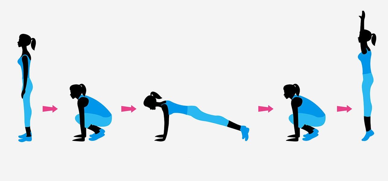 Бёрпи — это активные прыжки, силовые толчки, и глубокие наклоны, что позволяет организму значительно окрепнуть. Темп упражнений медленный с постепенным наращиванием до максимума. Рекомендовано для достижения результата выполнять до 100 бёрпи в сутки (если возникнут трудности, стоит разделить курс на несколько этапов, не превышая 20 повторов), гарантированно, недели достаточно, чтоб отображение в зеркале приятно удивило. Разнообразьте занятия иными видами бёрпи.