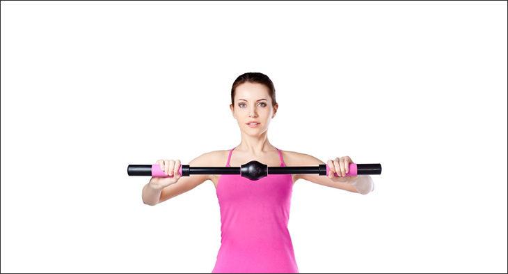 Первый тренажер представляет собой палку с гибкой средней частью. За счет этого палку можно сгибать руками в различных направлениях, задействовав при этом грудные мышцы.