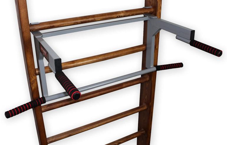 Идеальное сочетание, оно не займет много места и позволит тренировать несколько групп мышц. В большинстве моделей брусья либо съемные, либо могут складываться вертикально. Такая конструкция позволяет тренировать мышцы живота, плеч, а также грудь и трицепс (на брусьях).