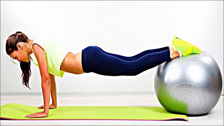 Добавляйте в свой комплекс привычные для нас упражнения, отягощенные с помощью фитбола. Например: планку, скручивания, отжимания.