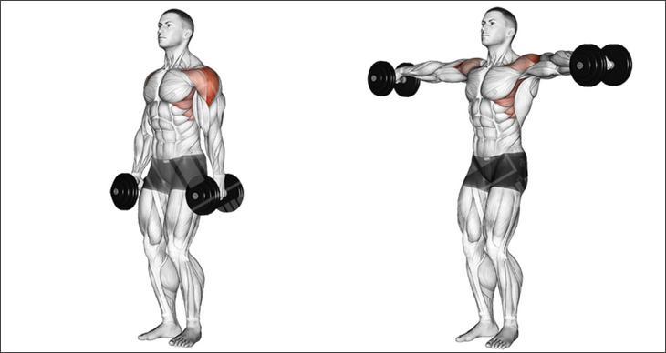 - Упражнения на дельтовидные. Картина не будет завершенной, если отстают плечи. Поэтому уделяйте им достаточно внимания! Лучшим движением для плеч являются отведения.