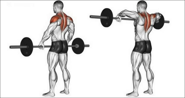 На втором месте протяжки или тяга штанги к подбородку.