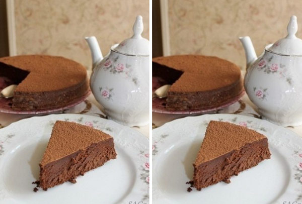 Торт полностью остудить в форме и только потом поставить в холодильник на всю ночь. Нарезать торт на гладкие кусочки не получится; лучше, если нож будет горячим. Кусочек нужно прорезать донизу, и потом снизу же нож и вытаскивать, не поднимая его обратно вверх. Торт прекрасно хранится в морозильной камере.
