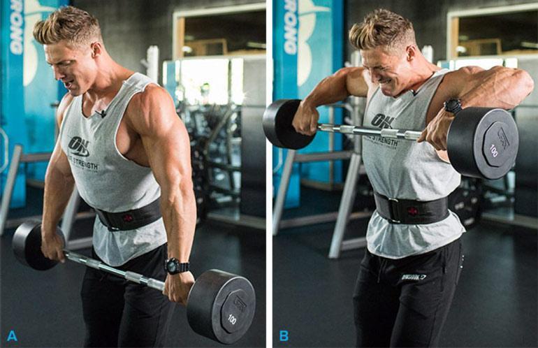 - Старайтесь тянуть вес не всем телом, вместо этого сконцентрируйтесь на локтях. В таком случае поднятие веса происходит не за счет рук и предплечий, а за счет мышц плеч.