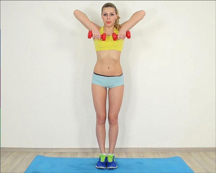 - Махи с гантелями в стороны.