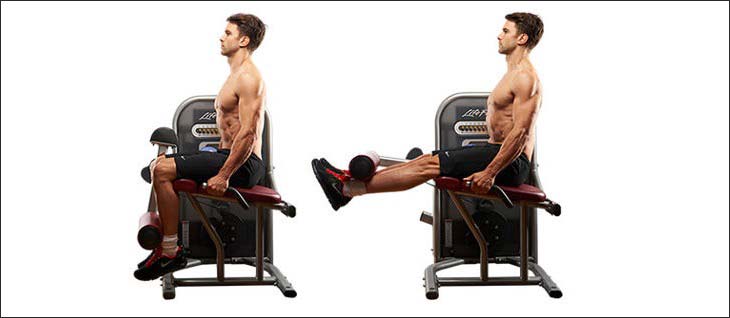 - Так как мы за полноценное развитие четырехглавой мышцы бедра, то помимо приседаний эффективно выполнять разгибания в тренажере сидя. Именно это упражнение равномерно распределяет нагрузку между четырьмя мышцами квадрицепса (латеральной, промежуточной, медиальной и прямой)