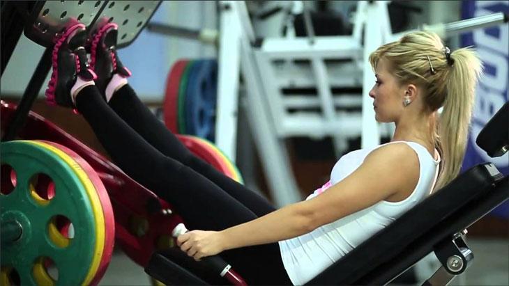 Для выполнения упражнения используйте тренажер для жимов ногами. Только ноги нужно поставить мысками на самый низ платформы тренажера. При этом слегка их согните. Выполните 3-4 сета по 12-15 повторений.