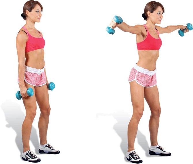 Статика. От провисания кожи на руках отлично помогают статические упражнения. Надо взять в руки гантели, стать ровно, ноги на ширине плеч. Разводим руки в стороны так, чтобы они были на одной линии с плечом. И стоим в таком положении 1 минуту. Затем следует минута отдыха и еще 2 таких подхода.