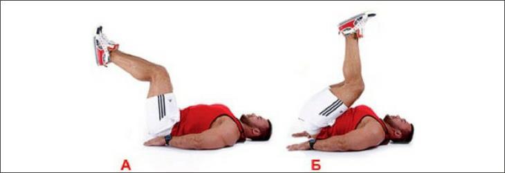- Подъем ног. Чтобы выполнять это упражнение, также ложитесь на коврик, руки вытягивайте вдоль спины. Ноги сгибайте в коленях и отрывайте от коврика таз – низ вашего тела должен подтягиваться к верху. Выполняя подъемы, важно сохранять плавность движения, не допускать рывков. Итак, делайте вдох и в это время поднимайте ноги и таз под углом 90 градусов. В этой позе задержитесь на несколько секунд, делайте выдох и медленно опускайте нижнюю часть туловища с ногами. Выполнение этой задачи позволяет напрячь пресс, а заодно и задействовать мышцы бедер.
