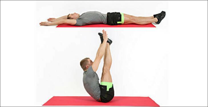 - Складывание. Отличное упражнение для мышц живота, потому что оно эффективно, а выполнять его в домашних условиях очень легко. Ложитесь на пол и поднимите руки за голову таким образом, чтобы они оказались на одной линии с ногами. Делайте выдох, поднимая сразу и прямые ноги, и руки. Ваши ноги должны быть подняты как можно выше, а пальцы рук – касаться носков. Это упражнение позволит вам сложить (скрутить) тело пополам. В таком положении нужно продержаться несколько секунд, и делая вдох, опуститься обратно. Задержка — это, пожалуй, самая трудная часть.