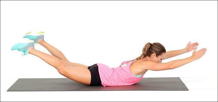 Существует три вариации, которые различаются положением рук, руки направлены вперед, руки в стороны и руки назад, в зависимости от их положения смещается нагрузка с мышц верхнего грудного отдела позвоночника к мышцам нижнего отдела – выполните 4-5 подходов по 12-15 повторений.