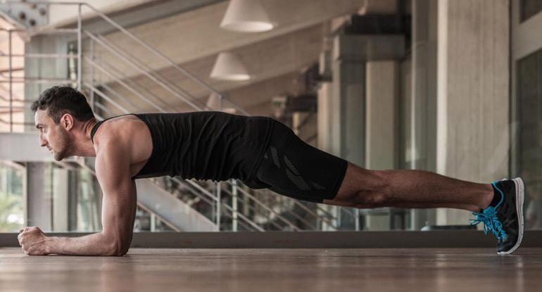 - Упражнения для пресса. Здесь могут быть скручивания, упражнение «скалолаз», подъем ног с положения лежа, статичная планка.