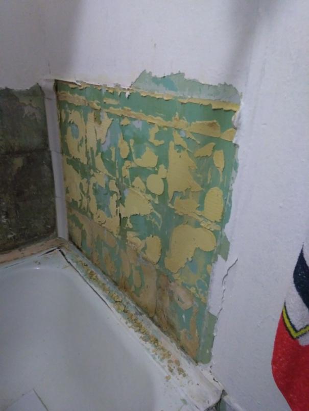 В один прекрасный день в ванной с грохотом отвалился фартук из плитки.
