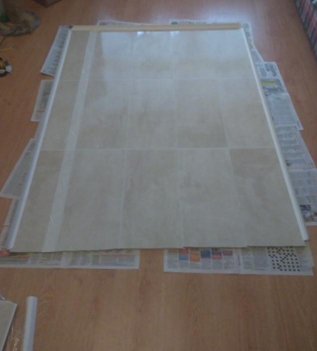 Так как я выбрала бескаркасный способ крепления, мне пришлось клеить панели на каждую из стен единым собранным полотном вместе с плинтусами и профилями.