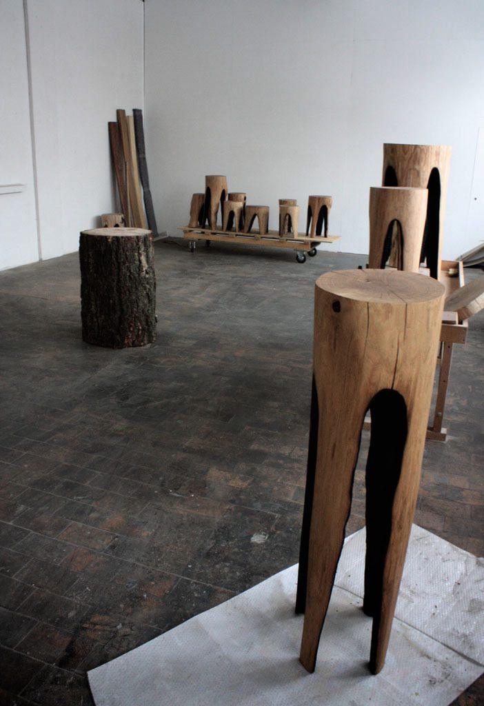 Эти безумные табуреты бельгийского дизайнера Kaspar Hamacher называется « Ausgebrannt». Данная мебель была созданы в результате воздействия жара и пламени.
