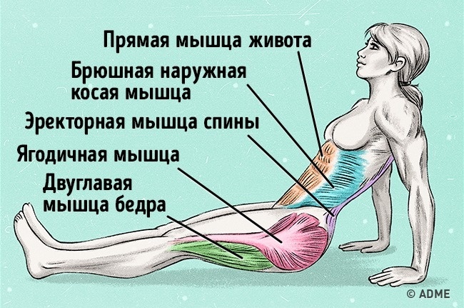 - Избавление от боли и зажимов в спине. Если делать хотя бы 3–4 раза в неделю обратную планку, вы избавитесь от болей и зажимов в спине. Планка (как обратная, так и прямая) эффективно прорабатывает все отвечающие за это мышцы.