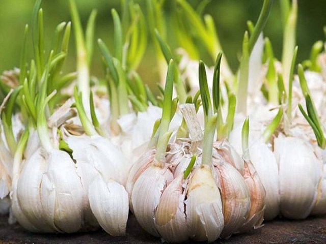 1. В процессе прорастания у чеснока появляются новые ферменты с мощным действием против многих заболеваний. Даже по вкусу зеленые перья более острые с насыщенным ароматом.